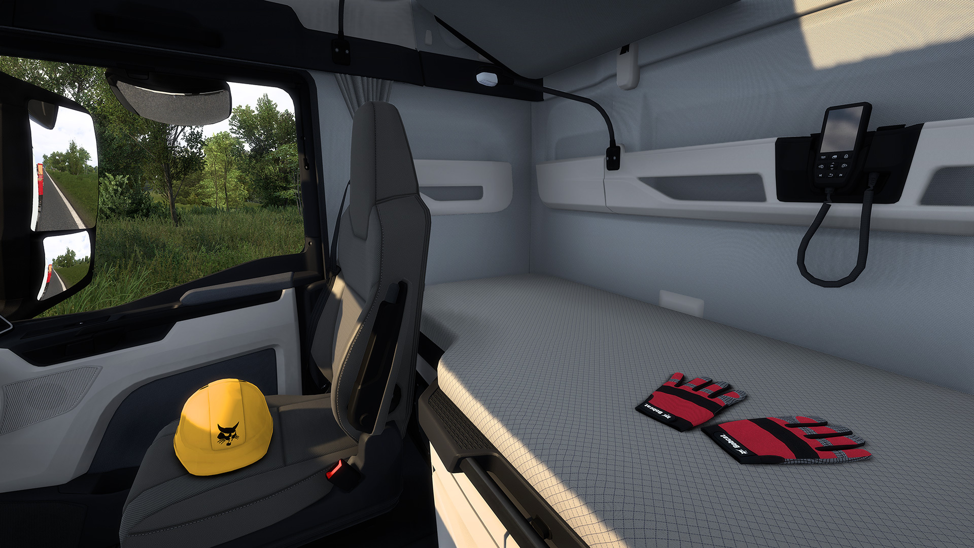 Kromě nových nákladů obsahuje toto DLC také sadu značkových interiérových doplňků Bobcat. Můžete si tak kabinu vyzdobit pracovními rukavicemi, černou kšiltovkou, ochrannou přilbou, polokošilí a reflexní bezpečnostní vestou. Oblečení je přímo inspirováno skutečným pracovním vybavením s logem Bobcat a představuje perfektní doplněk pro každého pracovitého kamioňáka i skvělou připomínku toho, že bezpečnost na pracovišti je vždy na prvním místě.