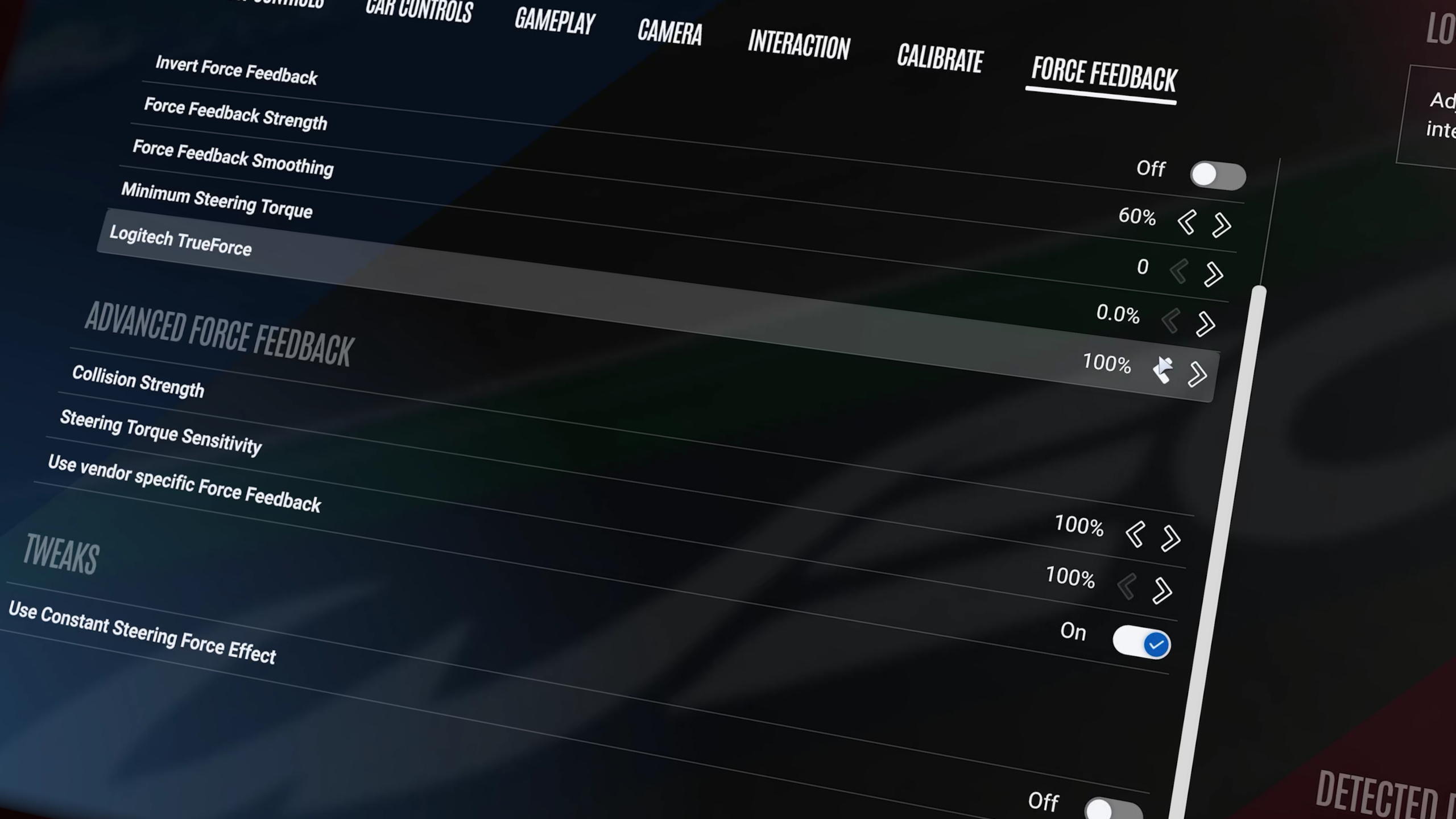 Z této spolupráce s Logitechem ale těží úplně všichni. Část těchto detailních fyzikálních efektů (např. vibrace motoru či povrchu) byla zakomponována i do běžného FFB signálu pro volanty bez podpory TRUEFORCE. V nastavení si navíc můžete sami upravit intenzitu těchto efektů. Titul nově oficiálně podporuje také oddělenou haptickou odezvu – stačí v menu zvuku vybrat vaše zařízení (např. bass shakery) a můžete vyrazit na trať.