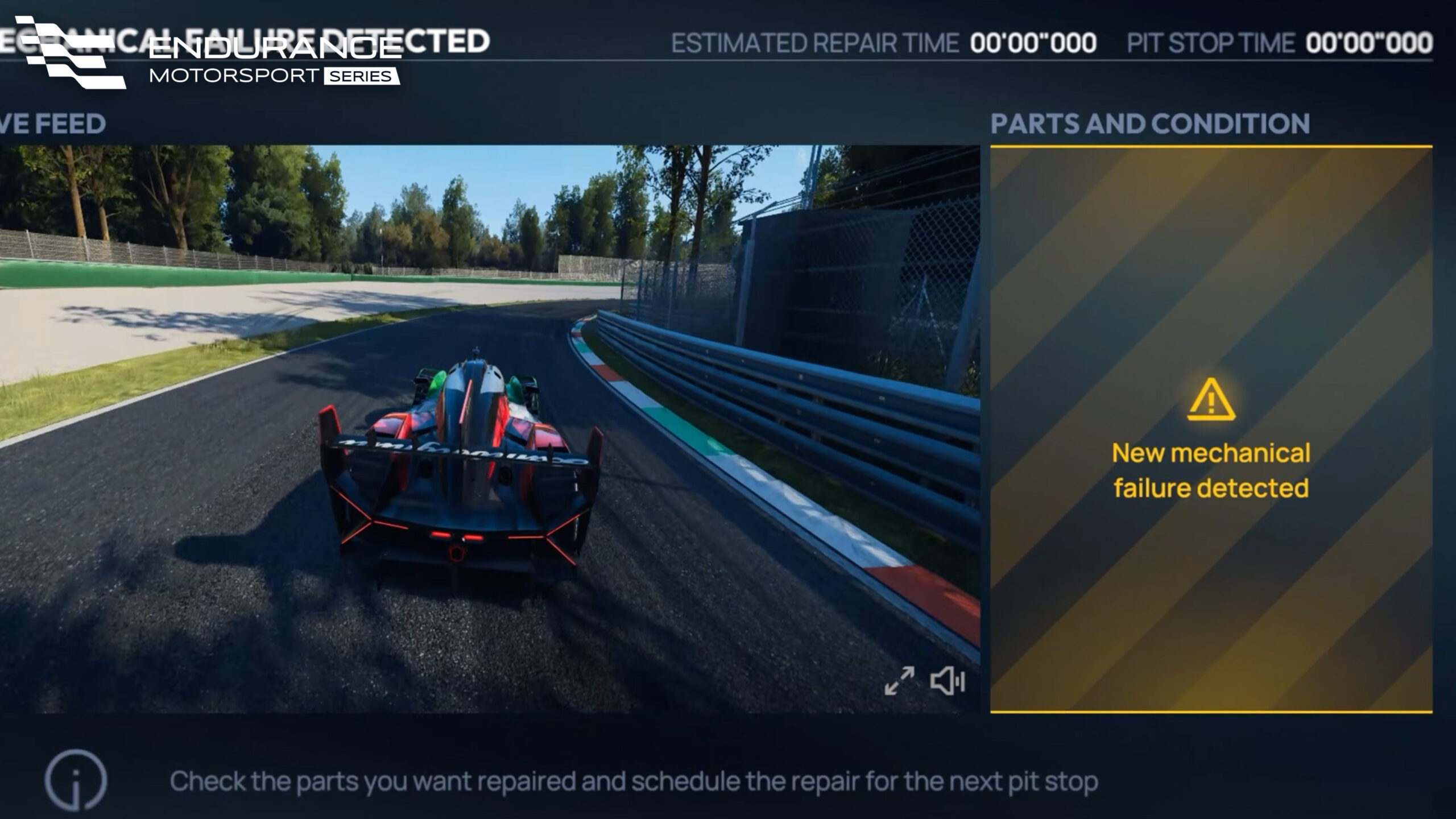 Z pozice závodního inženýra budete mít přístup ke speciální obrazovce, která detailně zobrazuje stav každé komponenty vozu a varuje před případnými problémy. Je jen na vás, zda povoláte vůz okamžitě do boxů k opravě, nebo zariskujete, počkáte na plánovanou zastávku a smíříte se se sníženým výkonem během aktuálního stintu.